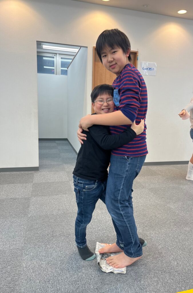 新聞から落ちたら負け。二人組で協力してがんばりました!
