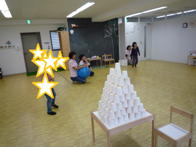 この紙コップタワー、すごいですよね♪