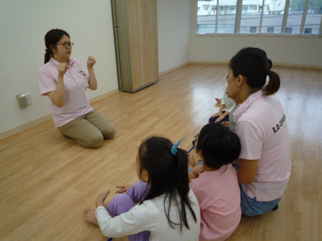 午前中は公園へお出かけをあきらめて、お教室にて運動あそびです。