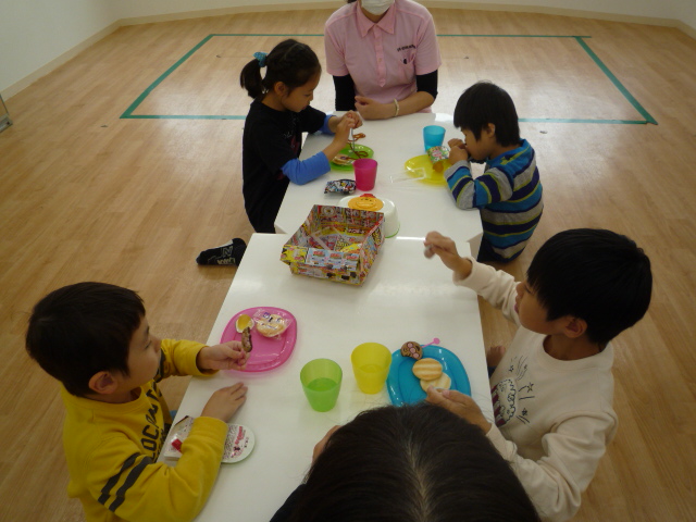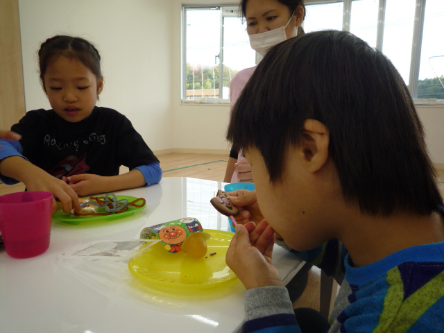 自分で選んだおやつを食べるとあって、みんなニコニコです。