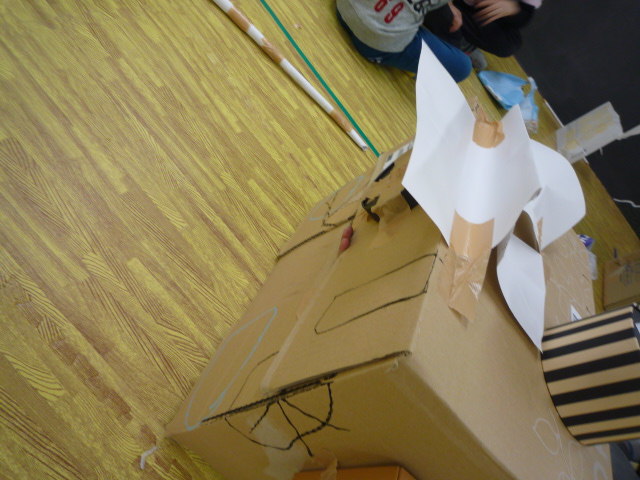 最後の自由時間には、段ボールで車を作ったり隠れ家を作ったり。